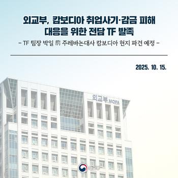 아울러 이날 외교부는 지난 14일 박일 전 주레바논대사를 팀장으로 하고 영사안전국, 아세안국, 개발협력국 등 외교부 내 관련 실·국이 참여한 '캄보디아 취업사기·감금 피해 대응 TF'를 공식 발족했다고 전했다.